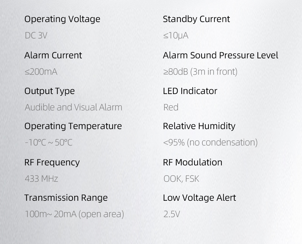 Uređaj koristi fotoelektrični senzor za detekciju dima te dodatni senzor za prepoznavanje naglog porasta temperature iznad 70°C. Kada otkrije dim ili opasnu promjenu temperature, aktivira se glasna sirena od 80 dB, čime odmah upozorava ukućane.