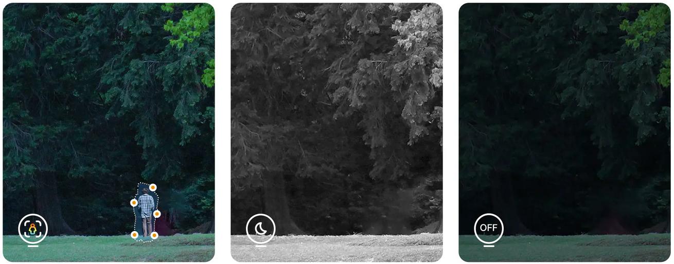- Različiti načini noćnog vida – IR, puni kolor, pametni režim ili potpuno isključeno, ovisno o potrebama.
