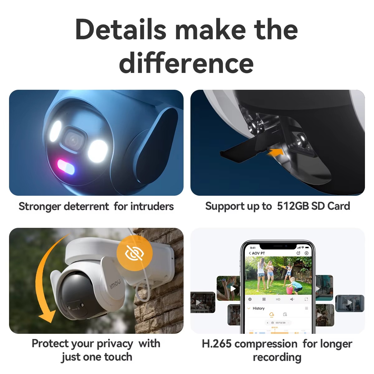 - AI detekcija ljudi i vozila (IMOU SENSE®) – smanjuje lažne alarme i omogućuje precizno praćenje do 25 m.