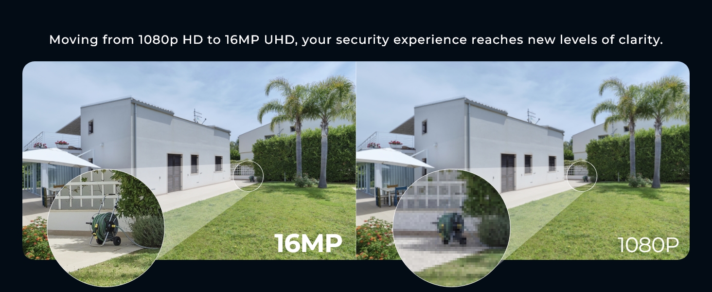 Kut gledanja od 180° i 16MP rezolucija daju vam ultra-detaljnu sliku vašeg doma. Ugrađeni visokokvalitetni CMOS senzor s IR LED svjetlom omogućuje izvrstan prikaz u mraku, do udaljenosti od 30 metara. Svaki potez ili kretanje bebe ili kućnog ljubimca gledajte jasno pri slabom svjetlu.