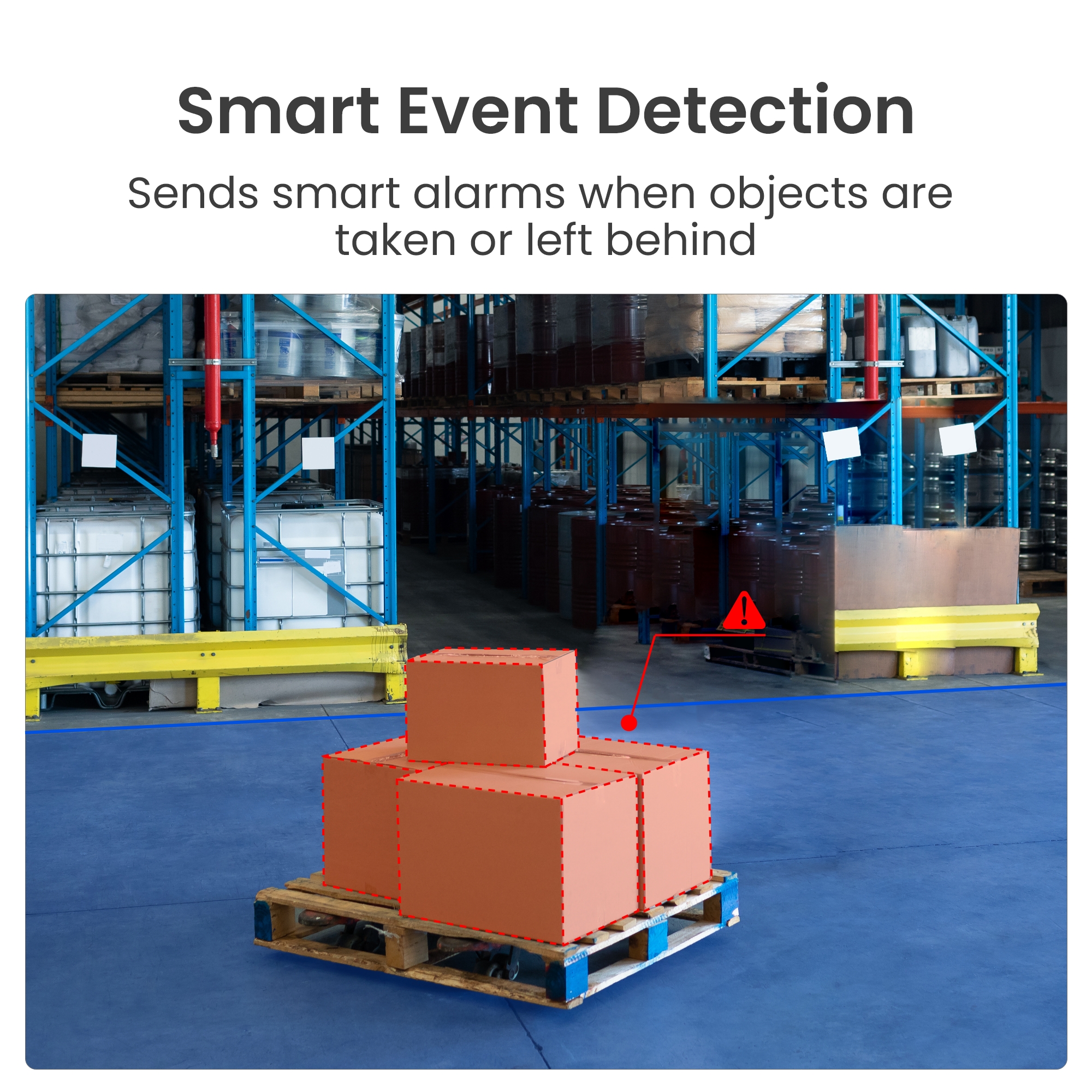 RP‑PCB8M koristi napredni Smart Detection sustav koji razlikuje osobe, vozila, životinje i opći pokret, čime se smanjuje broj lažnih alarma i povećava relevantnost obavijesti. Osim standardne detekcije pokreta, podržani su i posebni događaji poput uklanjanja objekta i zaboravljenog objekta (beta), što je korisno za nadzor paketa, opreme i kritičnih zona.