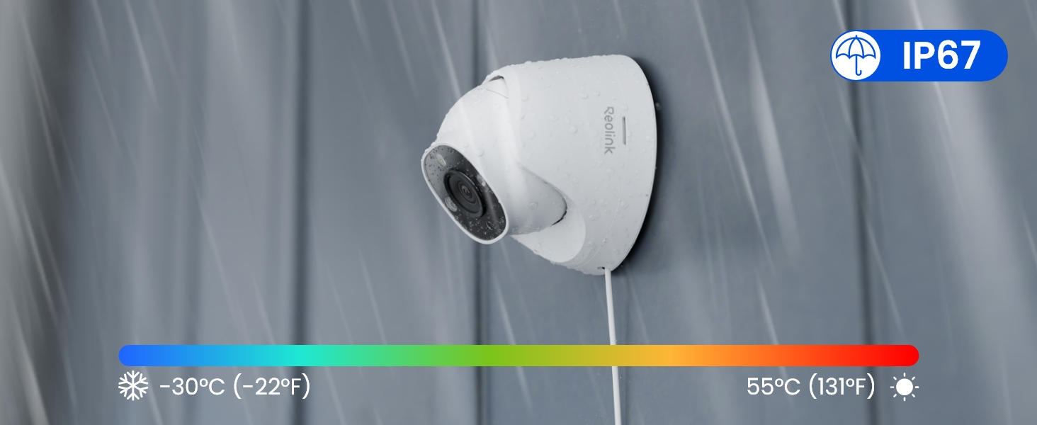 Kućište kamere izrađeno je od metala i ima IP67 certifikat, što znači potpunu zaštitu od prašine i vode u teškim vremenskim uvjetima. Kamera pouzdano radi na temperaturama od −30°C do +55°C i pri vlažnosti od 10% do 90%, što je čini prikladnom za većinu klimatskih okruženja.