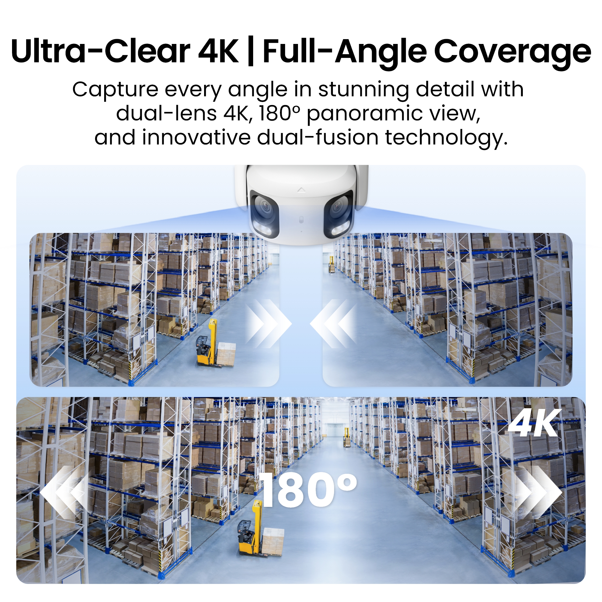Reolink RP-PCT8MD postavlja nove standarde u nadzoru širokih područja. Zahvaljujući sustavu s dvostrukom lećom, ova kamera spaja dvije slike u jednu besprijekornu panoramsku snimku od 180°. To znači da jednom kamerom možete pokriti ono za što su prije bile potrebne dvije ili tri, i to bez “slijepih kutova” i uz minimalno izobličenje slike. Uz 4K rezoluciju i naprednu AI detekciju, vaša sigurnost je na najvišoj razini.