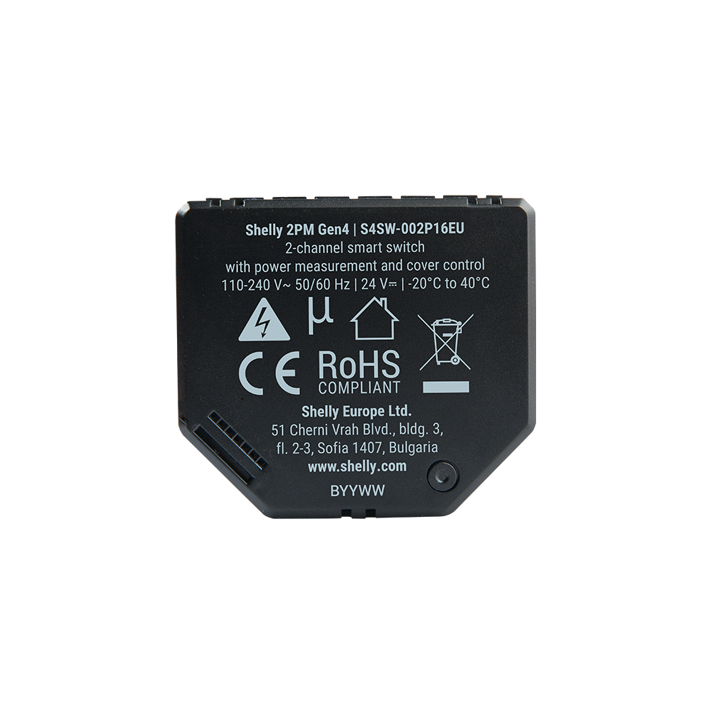 Shelly 2PM Gen4 je svestrani pametni relej dizajniran za upravljanje dvama neovisnim električnim krugovima ili jednim dvosmjernim motorom za rolete, tende i zavjese. Opremljen najnovijom Gen4 tehnologijom, ovaj uređaj nudi vrhunsku brzinu, veću memoriju i potpunu kompatibilnost s Matter standardom, čineći vaš dom pametnijim i energetski učinkovitijim.